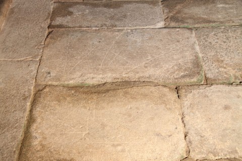 Este descubrimento fíxose cando a Oficina Técnica do Consorcio de Santiago estaba a iniciar a restauración da tarima de madeira que cobre o chan da igrexa. Debaixo da tarima apareceu o pavimento de pedra granítica completamente cuberto por monteas, debuxos a tamaño natural realizados pola cuadrilla que no seu día traballou na construción do edificio e que servían como guía aos canteiros á hora de tallar cada pedra.