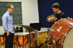 Antes da velada, o concertino de violín, James Dahlgren, e o timbaleiro José Vicente Faus...